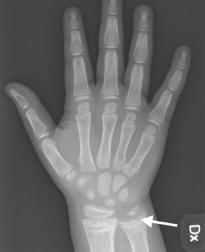 The RSS is a quantitative method that uses radiographs to assess the severity of rickets at the wrists and knees. Originally validated in nutritional rickets, the score is based on the degree of metaphyseal fraying, metaphyseal cupping, and the proportion of the growth plate that is affected. It is a 10-point scale, for which 10 represents the most severe radiographic changes due to rickets and 0 represents the absence of these changes.1